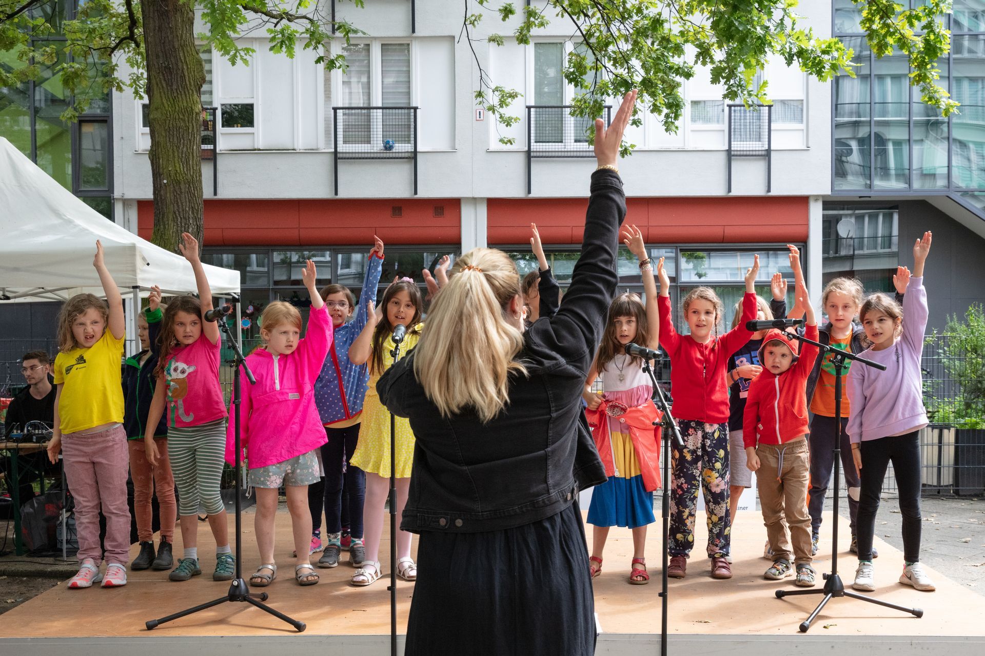 - Mehrere Auftritte zum Zuhören und Mitsingen in verschiedenen Bezirken der Stadt