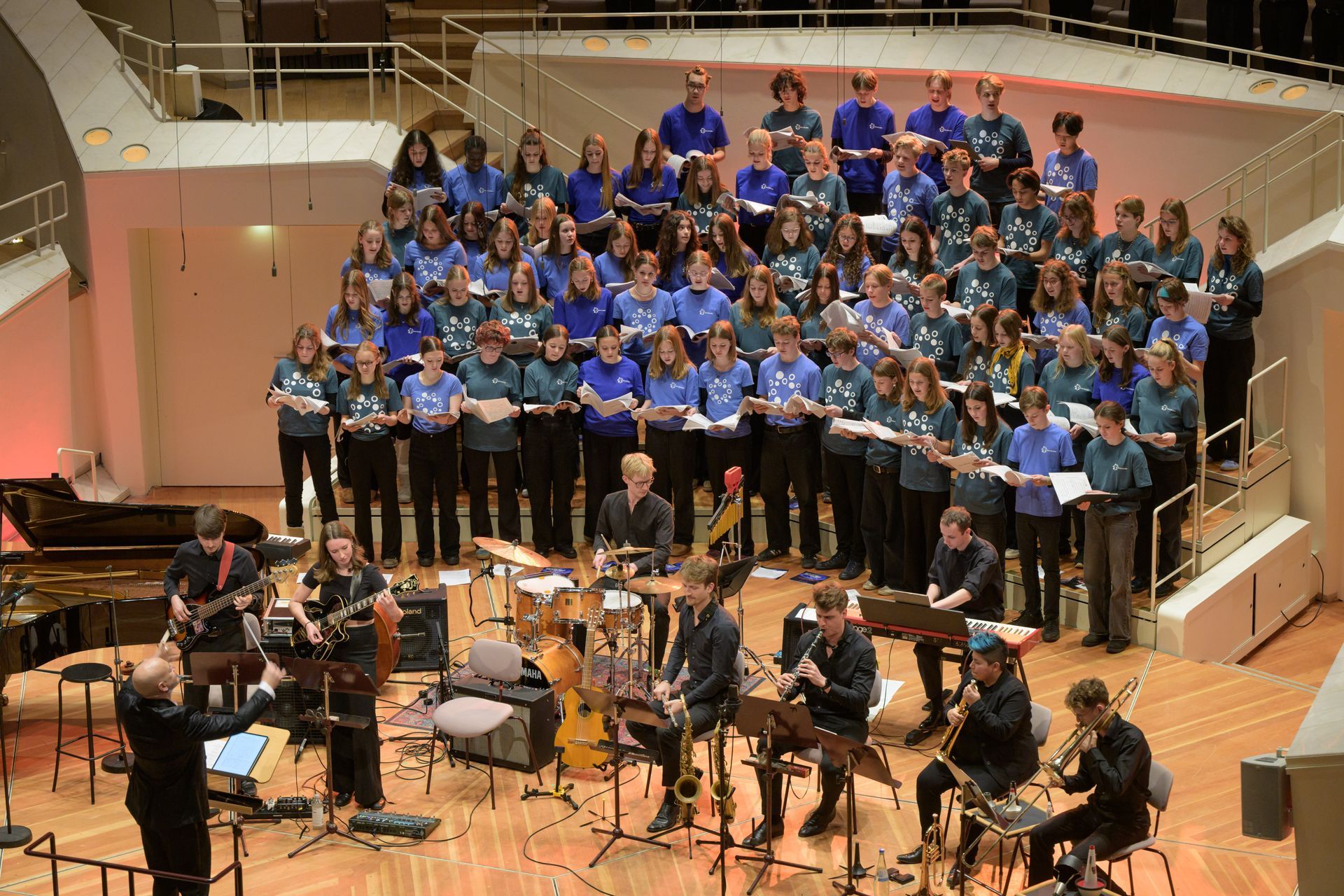🎶 Sing-along concert for school classes on January 17, 2025: Over 4,000 children will come together for a joint sing-along in two concerts in the Great Hall of the Philharmonie, accompanied by a band with members of the Berlin Philharmonic and guests.